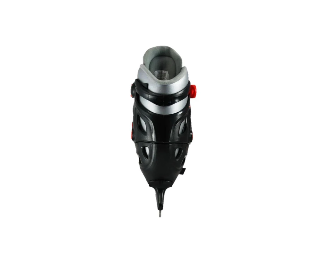 To adjust sizing push and hold down the button on heel of the skate, simultaneously pull the toe of the boot to the desired size. Match the arrow with the desired size on the side of the boot near the toe area.