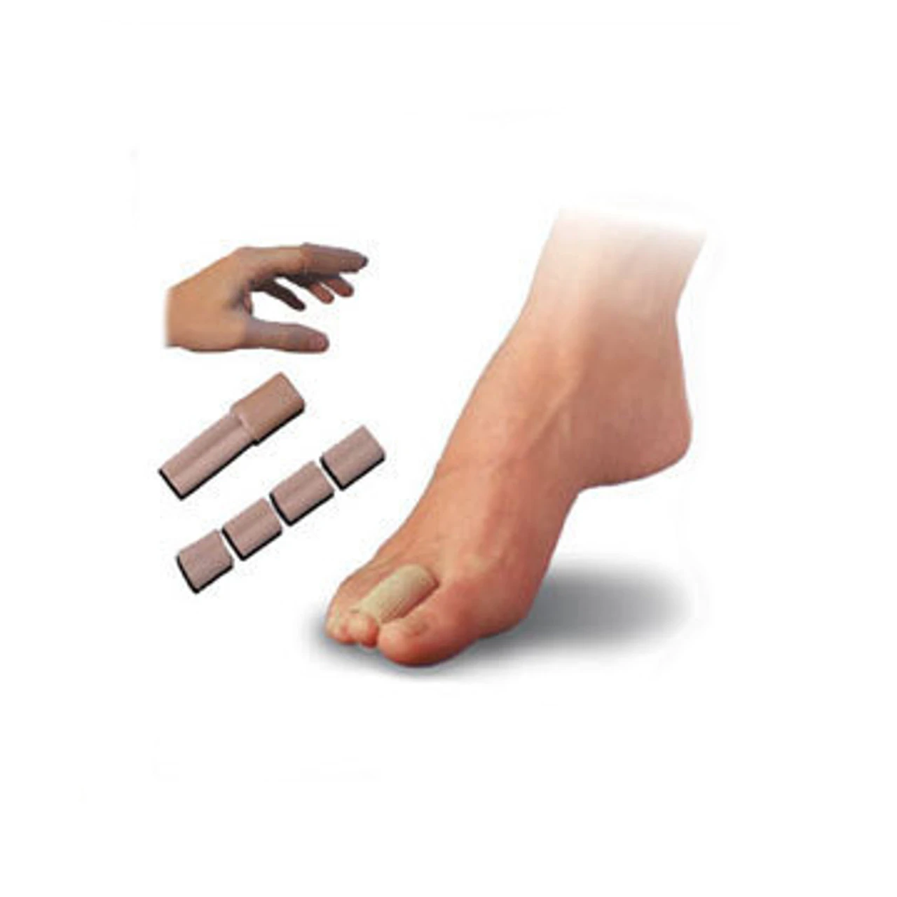 The Tubing comes in various sizes approximately 1/2″, 3/4″ and 1″. The small tubing is approximately a 1/2″ x 6″ tube made with a horizontal tight stitching. This tube is used for small toes. The medium tubing is approximately 1/2-3/4″ x 6″ tube made from a mesh tubine which is slightly looser than the 1/2″ tube and is used for the middle toes and fingers. The 1″ tube is 6″ long and is designed for the large toe. Sold Individually.