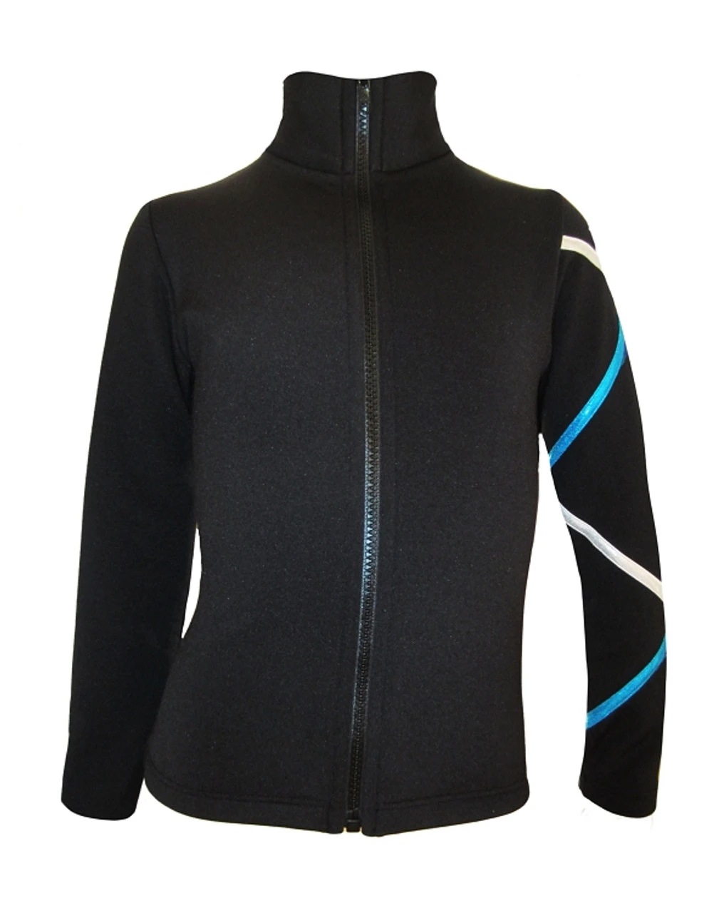 Power stretch, fleece ice skating jacket with Criss Cross design. Our new colors criss cross design stripes made with and Silver and Turquoise Shimmer Matrix fabric. This jacket offering warmth and stretch to provide comfort and freedom of movements during the ice skating practice. Functional and stylish – this ice skating jacket will be look great separately or as a part of ice skating outfit with “Criss Cross” ice skating pants. Available in Child X Small, Child Small, Child Medium, Child Large, Adult X Small, Adult Small, Adult Medium and Adult Large sizes.