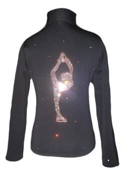 Polartec power stretch ice skating jacket with “Biellmann” rhinestones applique. Over 400 shiny clear AB crystals, size 2mm. Great for every day practice and competition event. Fitted style without a hood and high performance polartec fabric ideal for ice skating that demand freedom of movement, moisture management, and warmth.