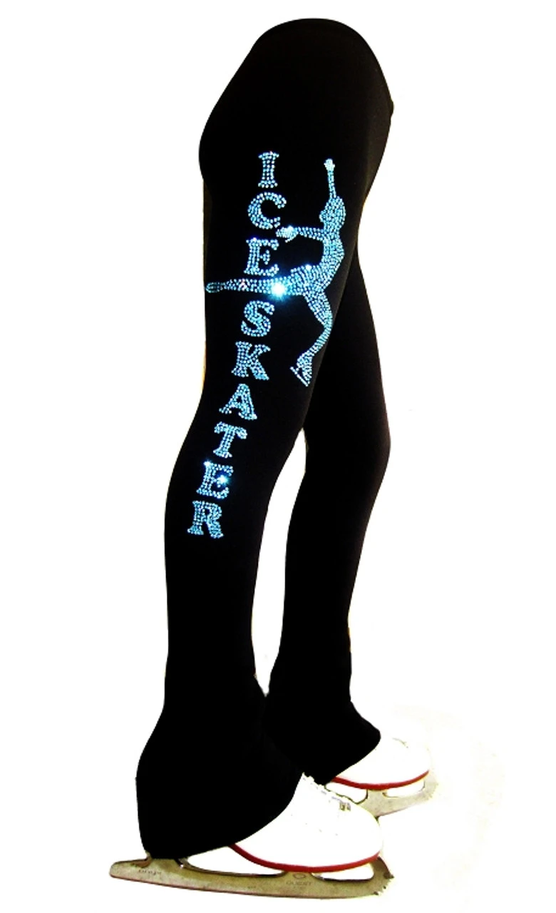 Aqua Crystals Ice Skater Pants in “Landing” position.