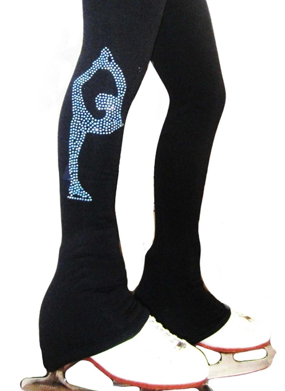 Ice skating pants with blue crystals “Biellmann” rhinestone applique. Available in girls and Women’s sizes. Choose warm Polartec power stretch fleece or lighter weight non fleece Microfiber fabric.