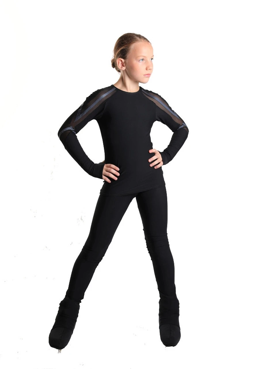 IceDress - Figure Skating Longsleeve Top - Track (Black And Dark Grey)