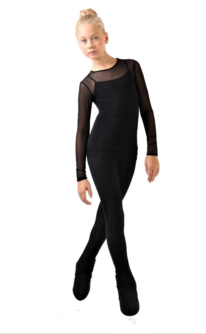 IceDress – Figure Skating Two-Layer Top : Mesh Long Sleeve With Cami Top (Black And Black)