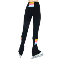 High waist black supplex leggings feature colour block stripes at centre back and outer calves. Flat stitched seams and under the heel styling add soft, flexible comfort.