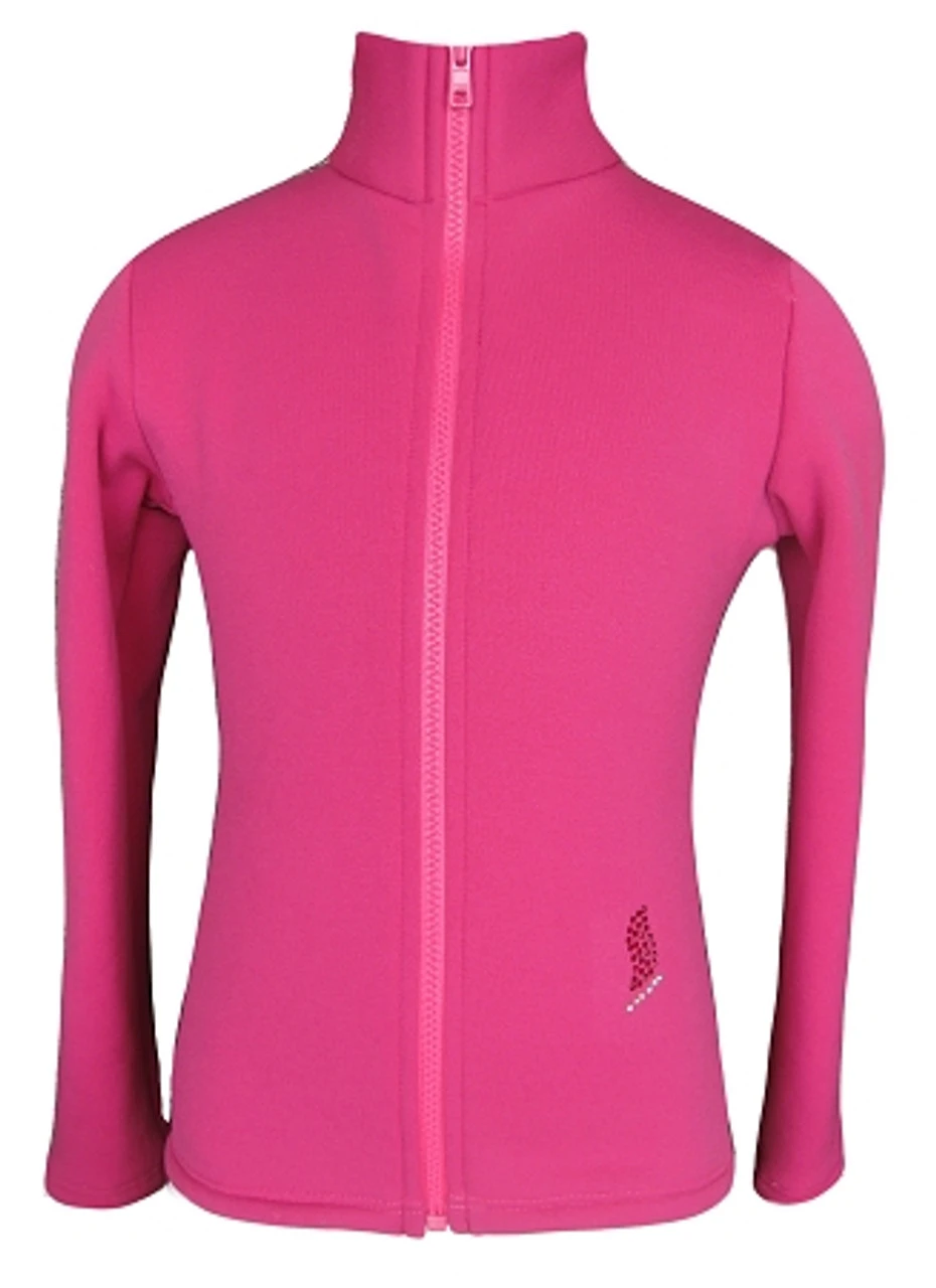 Polartec power stretch ice skating jacket with crystal applique: apx.400pcs. superior machine cut Czechoslovakian rhinestone size ss10 AB crystal. Great for every day practice and competition event. Fitted style without a hood and high performance Polartec fabric ideal for ice skating that demand freedom of movement, moisture management, and warmth.
