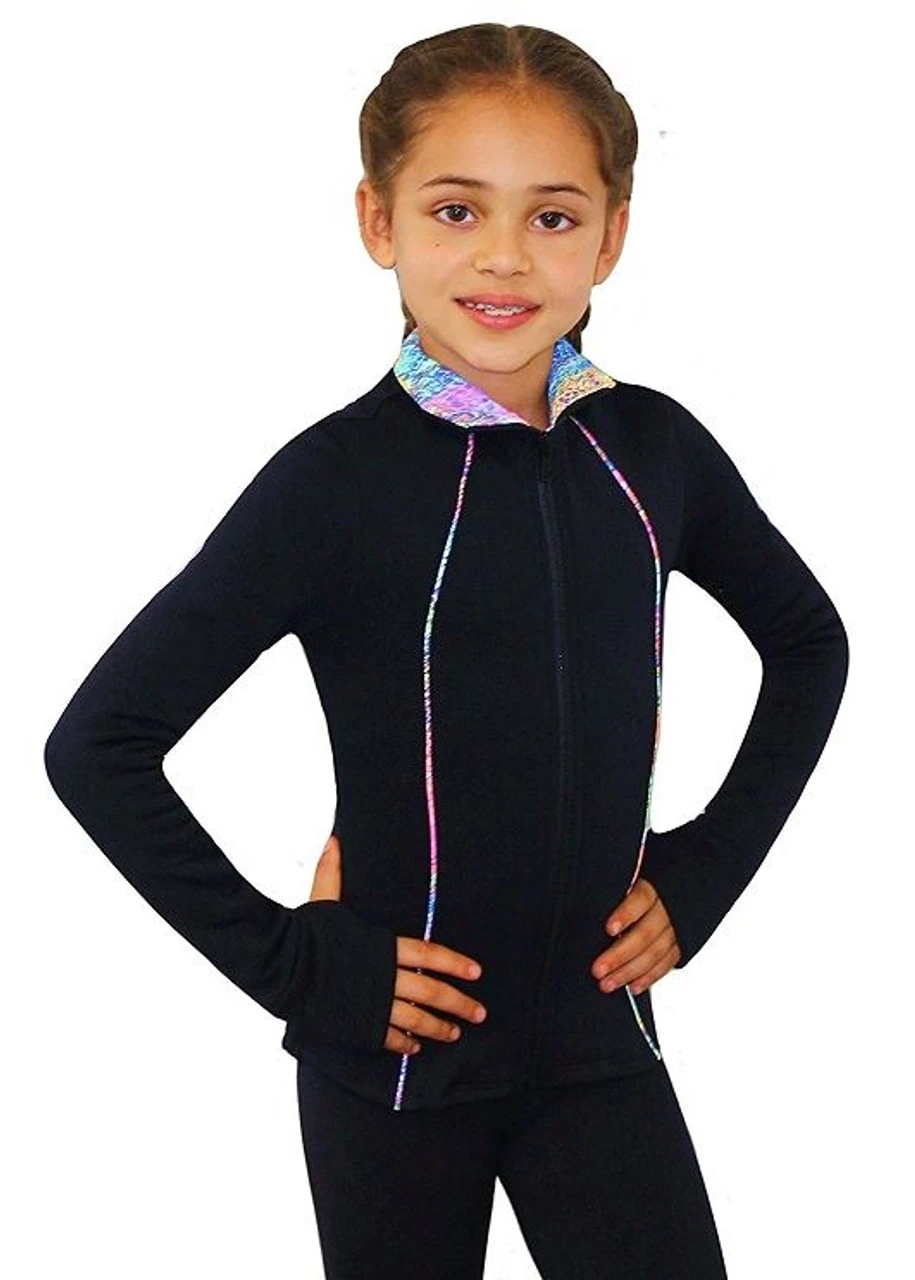 Venetta fit jacket engineered to help you stay warm and look elegant on the ice. Featuring high performance 4 way stretch Polartec fleece fabric for contouring effect, thumb holes for comfort and bright contrast details. Skatter skate rhinestone design create unique style and perfect look on the ice!