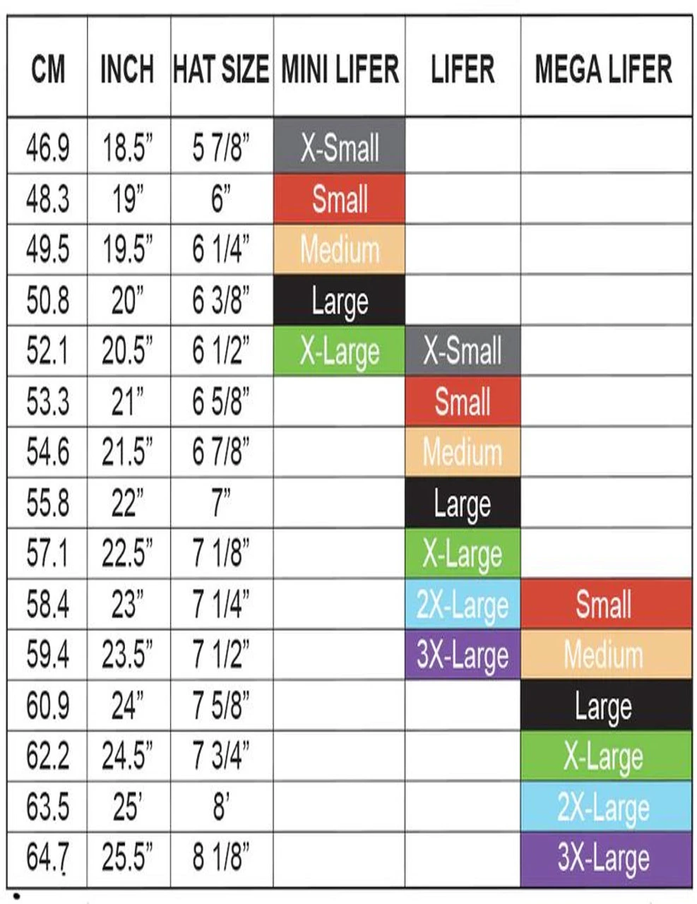 The Lifer helmet is available in 3 different shell sizes to accommodate different size heads.