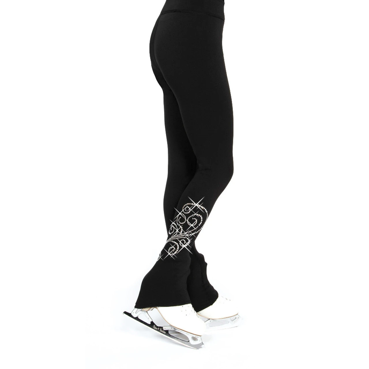 A crystal swoosh design accents one ankle of these thick, warm back leggings. Under-the-heel fit for a longer leg look.