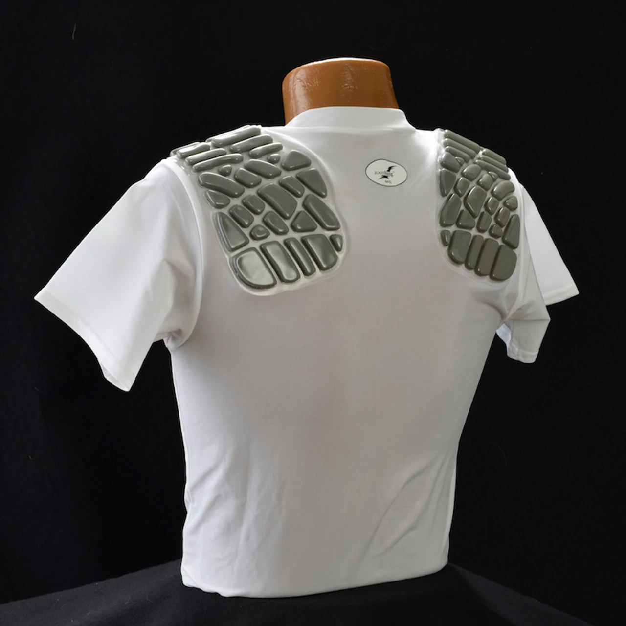 The Shoulder Protective Shirt Provides protection on both shoulders by itself or it can be worn under the Shoulder Pads. Shirt made of the finest quality compression moisture wicking fabric.